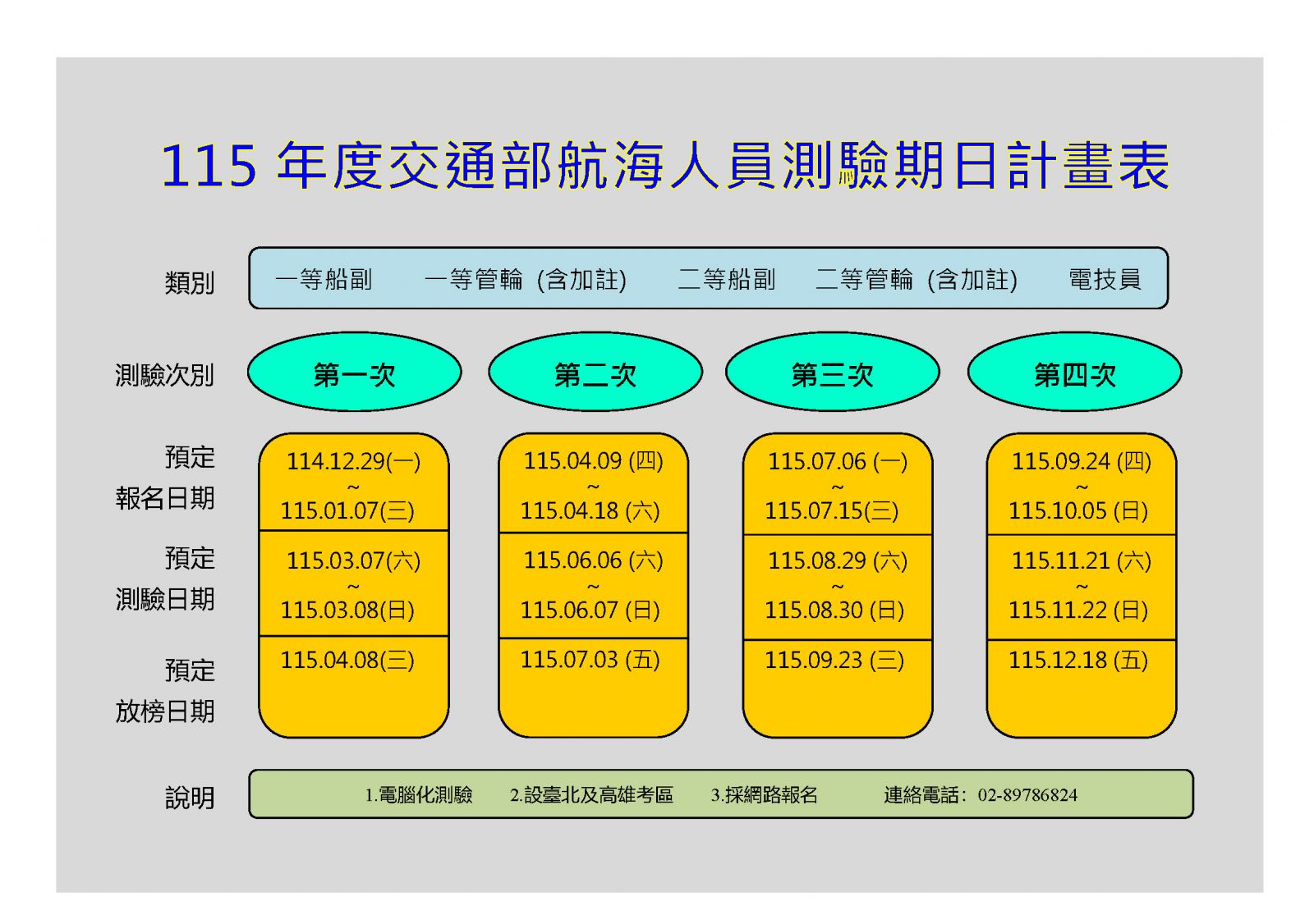 115年度交通部航海人員測驗期日計畫