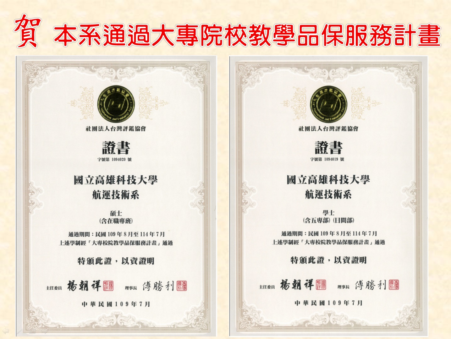 賀 本系全部學制均通過「大專院校教學品保服務計畫」評鑑