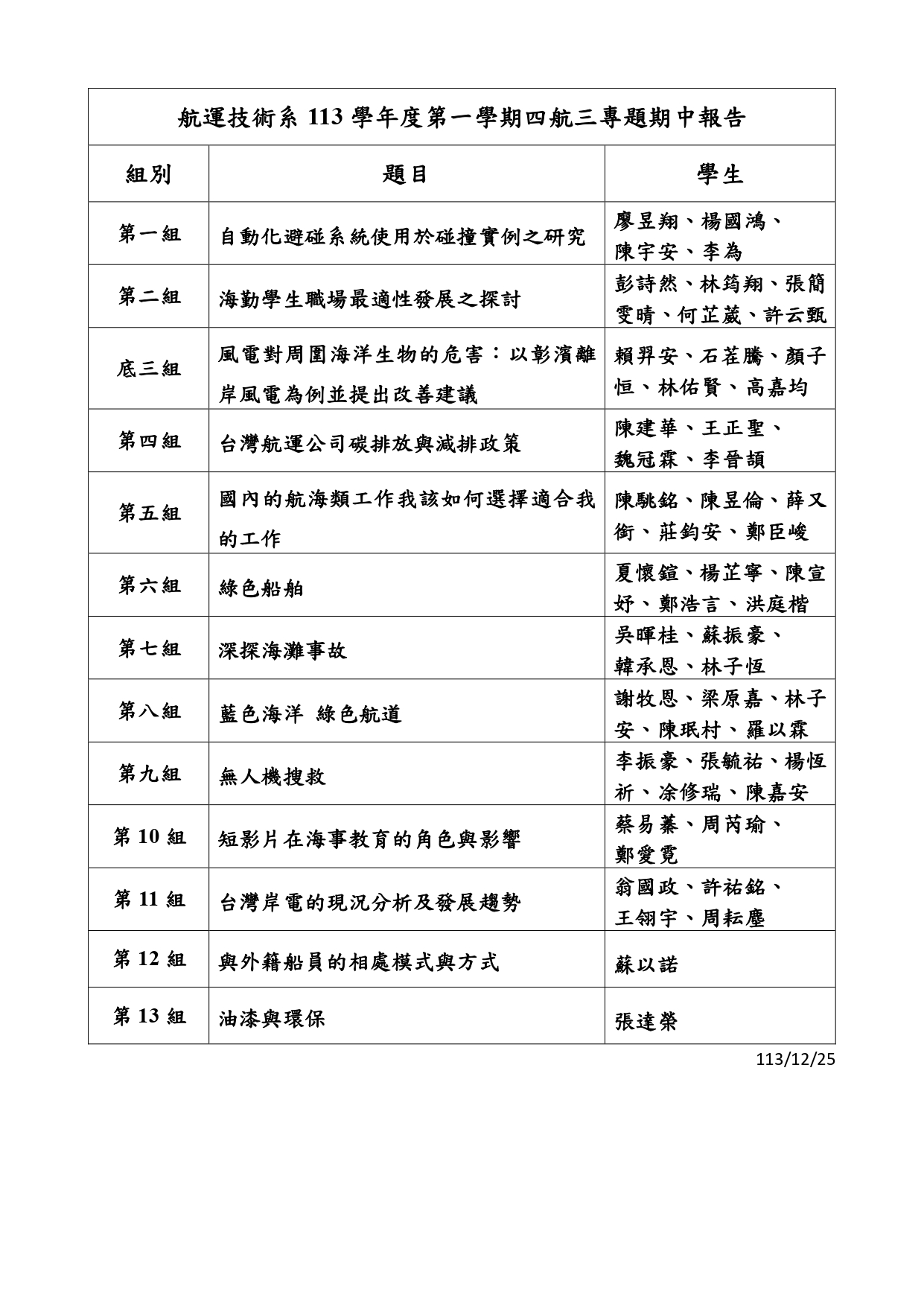 113年12月4日113學年度航運技術系案二技學生專題研究成果發表會