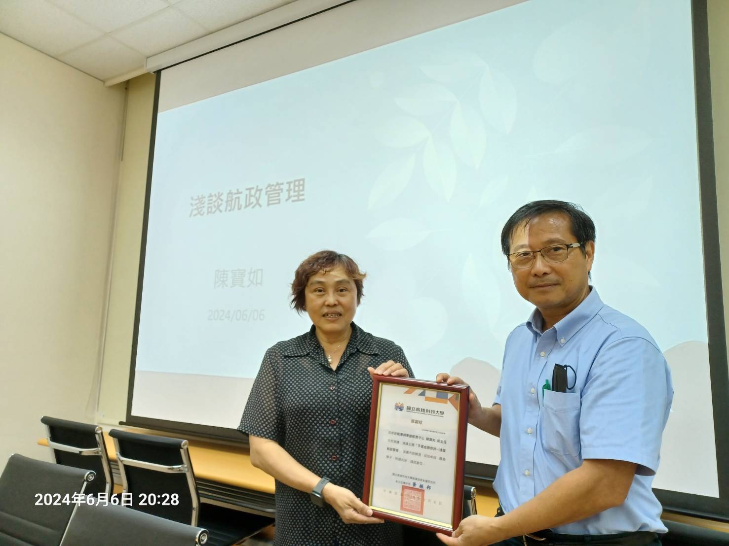 113年6月6日 交通部航港局東部航運中心退休主任陳寶如蒞臨演講