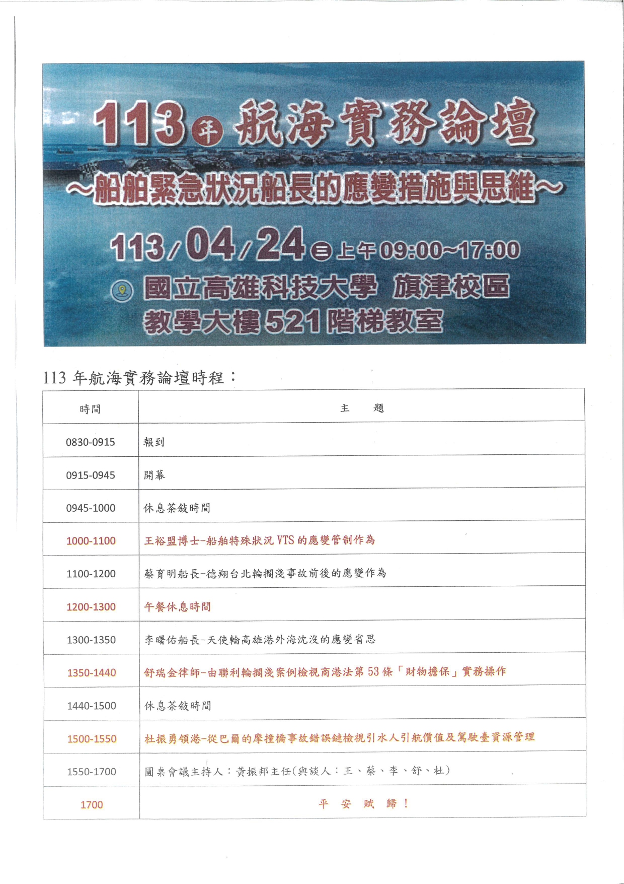113年4月24日113年航海實務論壇~船舶緊急狀況船長的應變措施與思維~